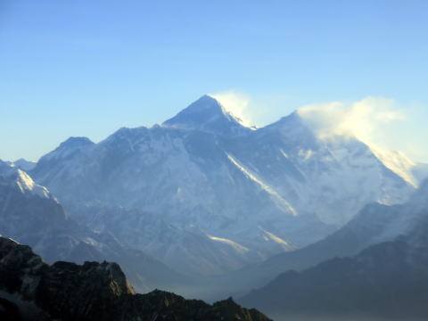 雪煙が舞うエレベストの全景