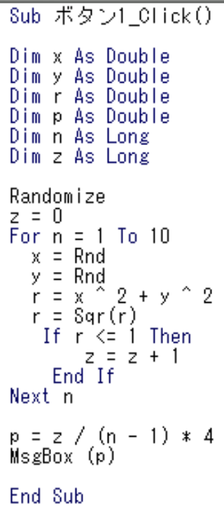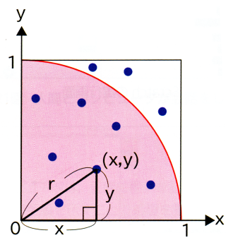 そのⅡ:モンテカロル法で円周率πの近似値を求める
