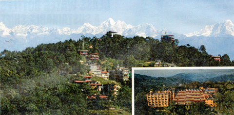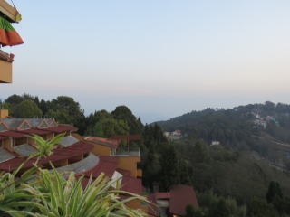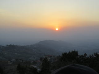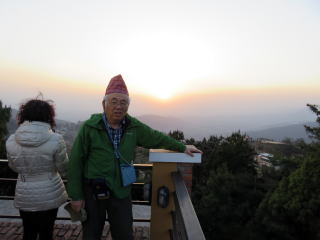 | ナガルコットへ 山岳リゾート「クラブヒマラヤ・ナガルコット・リゾート」ホテル宿泊 ★夕日に染まるヒマラヤの姿を観賞(実際は、かすんでいて見えなかった。) |
