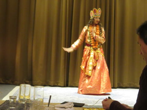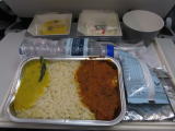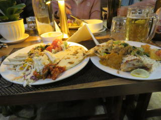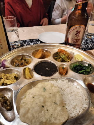 夕食は、バイキング形式のネパール料理でした。 メニューの多さにも驚き、欲深く二皿てんこ盛りで、 席に着きました。 本来なら残さないのが礼儀ですが、しかしながら ネパール料理は口に合わず1皿残してしまいました。 それと何となく、体調が思わしくなく部屋に戻ると おなかを壊し、下痢を引き起こしてしまいおました。 深夜遅く、なんどもトイレ直行となり大変でした。 移動の時、どうするのか心配になりましたが、 夜明けまでには出るものすべて出し切り 体調も良くなりホッとしました。 |