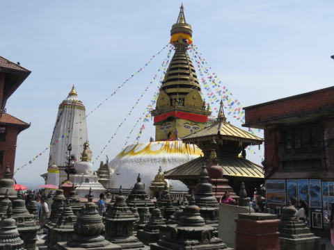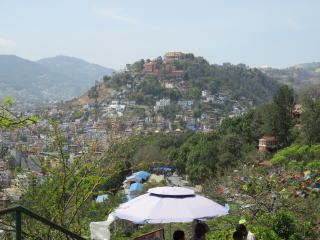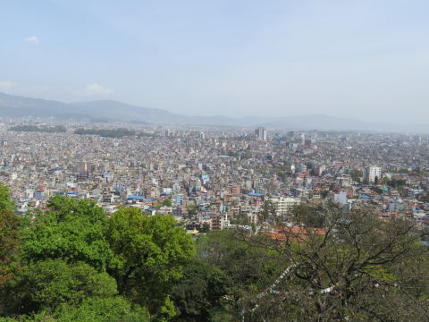| 丘の頂きに立つ、ネパール最古の仏教寺院 | 展望台からカトマンドゥの町が一望できる |