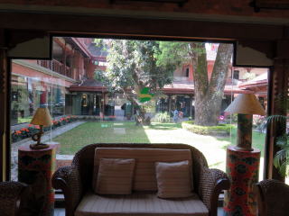 | 部屋から中庭を眺めて、 ネパールに来た実感が湧いてきた。 |