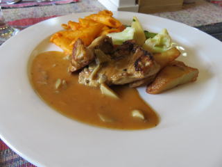 | バクタプールへ | 道中で昼食(洋食) |