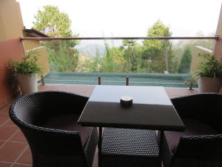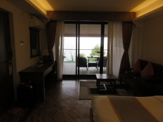| 客室の様子 | バルコニーにて ここから、ヒマラヤ山脈を眺めることが 出来るのですが、残念です。 |